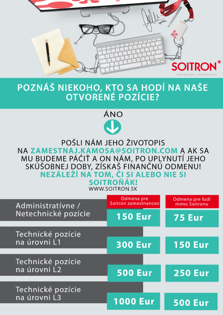 Životopisy posielajte na: zamestnaj.kamosa@soitron.com